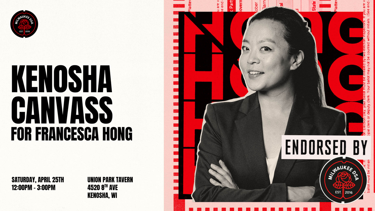 This is our chance to put the priorities of working people at the highest heights of Wisconsin government and fight for *our* rights on *our* terms! Join us on Saturday April 25th at Union Park Tavern to be the first to break the news to Kenosha!